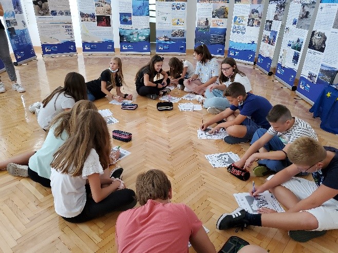 The exhibition was visited by 4 classes of Blato Elementary School, for which workshops were organized (5a – 21 students, 3.a and 3.b – 27 students and 6b – 18 students) .The exhibition was also visited by 14 students of Blato High School.