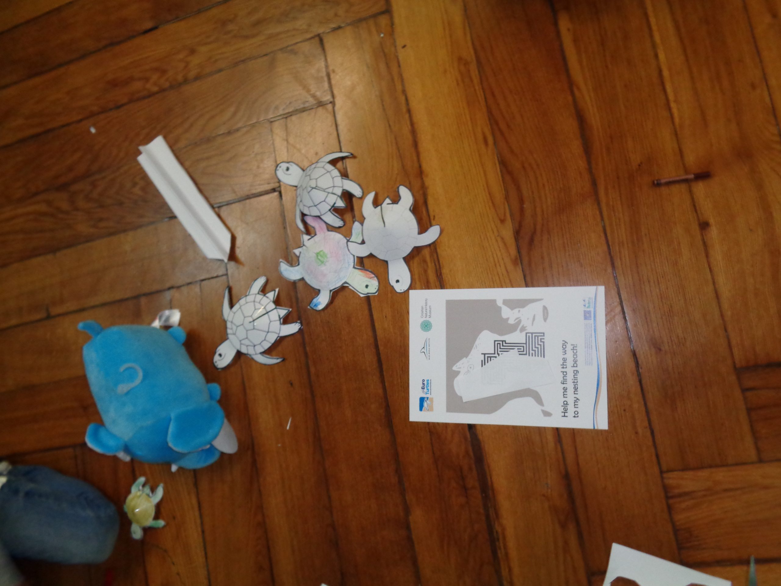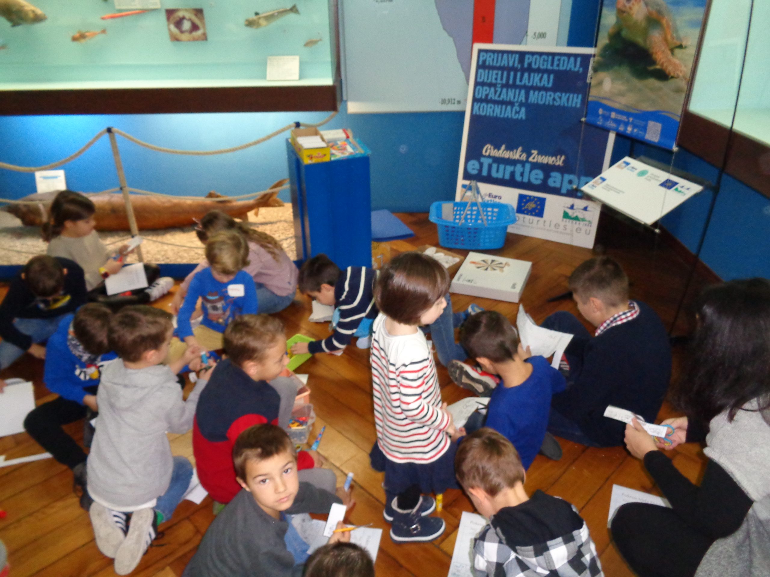 The aim of that workshop was to educate children about the sea turtles life, their biology and need for their protection. We gave them, stickers and other promotional material of the LIFE – Euroturtles Project about the protection of sea turtles in the Adriatic sea, to promote the project and the idea of nature protection. The workshop was attendended by 17 children, from age 6 to 13.