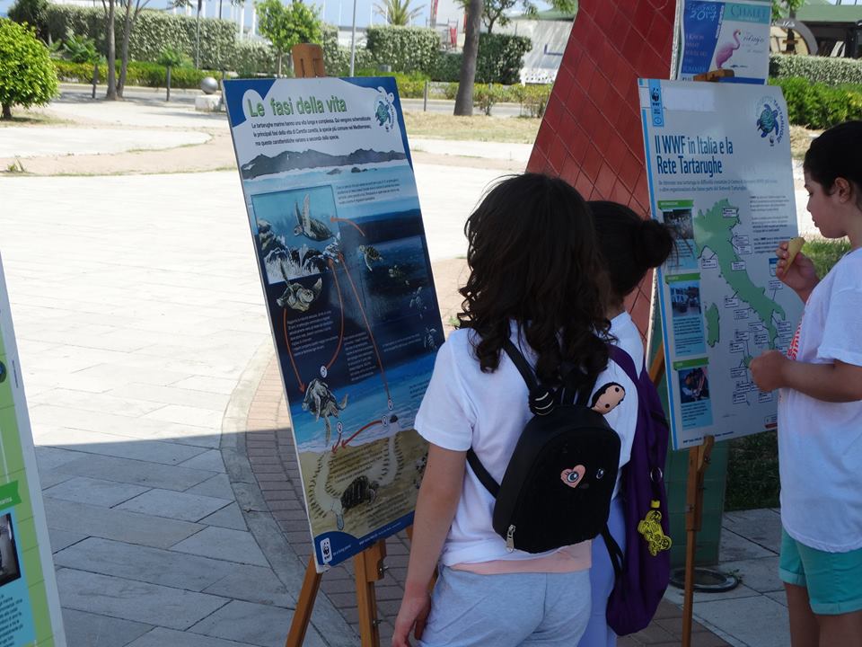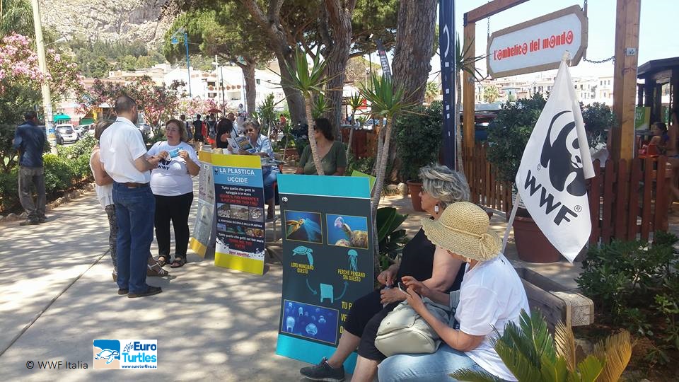 During this day of WWF Italy volunteering mobilization for the Protection of the Sea and Coast, the operators of Euroturtle’s project organized sea turtles awareness events (ACTION E2) in Policoro and in Mondello, near Palermo. Many tourists and children participated with interest asking information about sea turtles and the project.